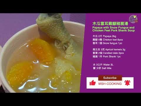 Dalam periuk besar, satukan pork shank, chicken feet, kepingan pepaya dan snow fungus. Tambah air secukupnya hingga menutupi semua bahan.